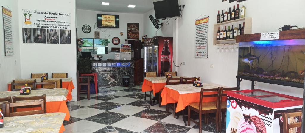 Saboreie a essência da culinária brasileira no restaurante da Pousada Praia Grande Solemar. Com localização privilegiada, a apenas 2,1 km da Praia São Paulo e 22 km do Litoral Plaza Shopping, é perfeita para quem busca diversão e relaxamento. Sua viagem merece esse toque especial.